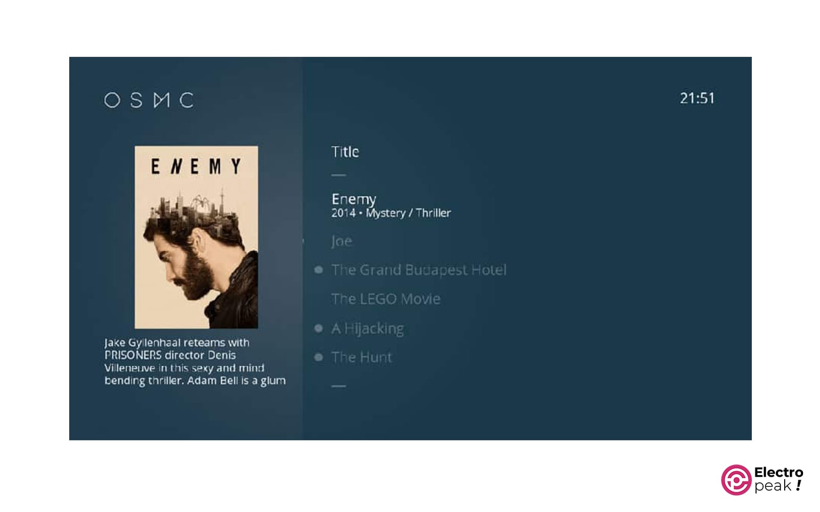 OSMC (مرکز رسانه متن باز) یکی از بهترین گزینههای media center است که برای Raspberry Pi ایجاد شده است. OSMC یک توزیع لینوکس بر پایه Debian و با ظاهر کاربرپسند Kodi است که نصب و استفاده آسانی دارد. OSMC نیز مانند LibreELEC میتواند اکثر فرمتهای رسانهای را از انواع منابع پخش کند. رابط کاربری این سیستم عامل عالی است. بهروزرسانیهای منظمی وجود دارد و در صورتی که با مشکلی روبرو شدید، جامعه پشتیبان قوی، مشکل شما را حل خواهند کرد.