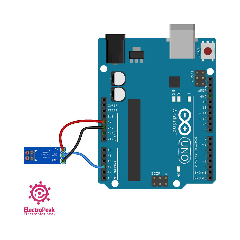 قسمتی از سنسور جریان که به آردوینو متصل میشه ولتاژ خروجیشه و جریانی که از سنسور جریان رد میشه آسیبی به آردوینو نمیزنه. تو توضیحات بخش ساخت آمپرسنج هم ذکر شده که به ازای هر آمپر جریان، ولتاژ خروجی سنسور 185میلی آمپر تغییر میکنه. که تو 30 آمپر حدود 5.5ولت میشه.
