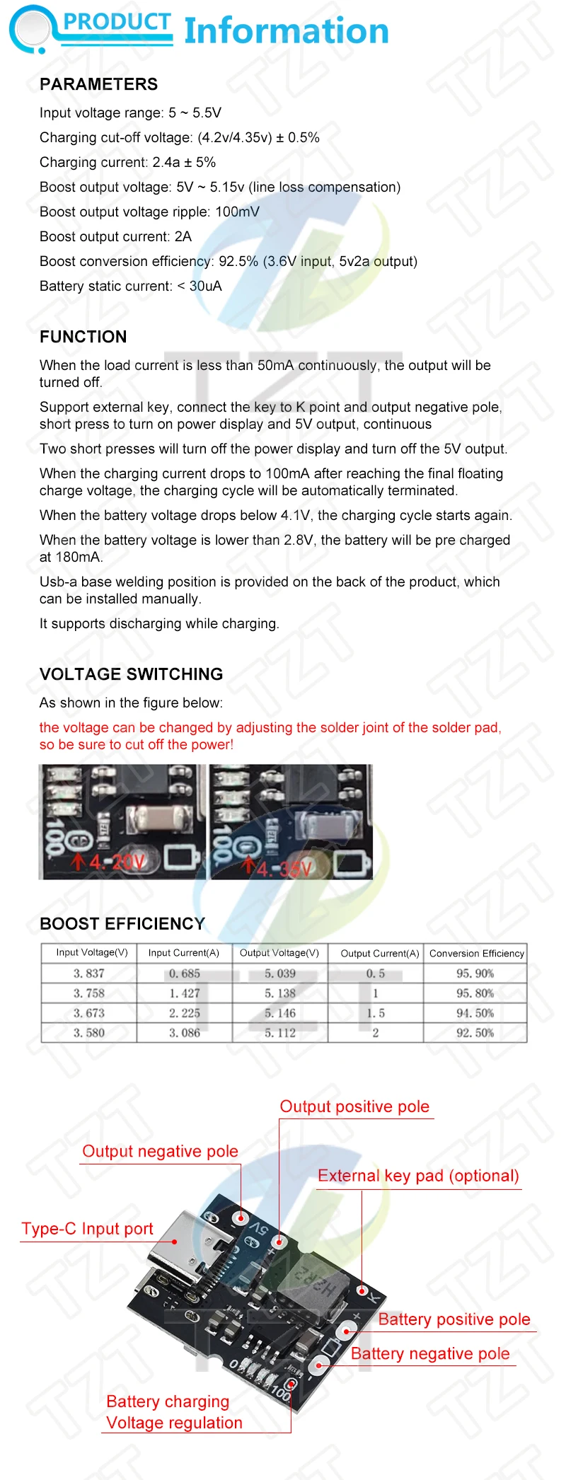 Specifications of 5V2A Charging and Discharging Integrated Module With Type-C