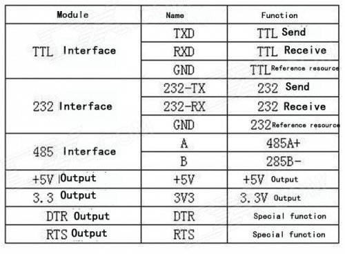 مشخصات فنی مبدل چندکاره USB / TTL / RS232 / RS485